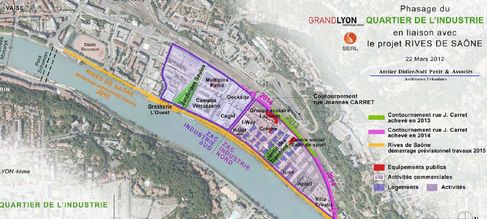 L'aménagement de la deuxième phase du quartier de l'industrie sera en liaison directe avec le projet des rives de Saône, et comprend à ce titre plusieurs aménagements en bordure du fleuve, comme le sens unique imposé aux véhicules, pour mieux "résidentialiser" le secteur, via le développement de modes doux et la valorisation du cheminement piéton. La circulation de transit sera, quant à elle, déviée sur la nouvelle voie Joannès Carret, à proximité de la voie ferrée, afin de redonner une certaine proximité du quartier avec les rives de Saône. Le but étant, in fine, de désengorger le centre de Vaise, et notamment la place Valmy, qui réceptionne aujourd'hui une part considérable des flux de véhicules. Au final, la ZAC Nord représentera 11.3 hectares et comptera près de 121.000 m2 de SHON, répartis à moitié entre activités et logements.