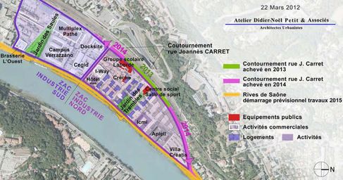 L’an prochain, le chantier de la ZAC Nord se poursuivra avec la démolition des bâtiments SIAM, Gabialex, et la réhabilitation des bâtiments de logement au 60/62 Rue des Docks. La livraison du projet ICMI, en cours, sera également effectif en cours d’année, tout comme la livraison de l’école Laborde, qui comptera 11 classes dont 4 maternelles et 7 primaires, des espaces de restauration et d’activités. L’aménagement du quartier devrait s’achever en 2015-2016, par l’aménagement d’un dernier tronçon de la rue Joannès Carret, qui sera raccordée avec le Quai.