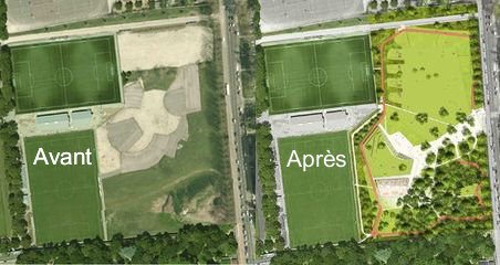 Sur la totalité du Parc, une promenade de 700 mètres reliera ces différents milieux et desservira les différents équipements et les pratiques de promenade ou de jogging. En termes d’investissement, le montant prévisionnel budgétaire se monte à 2.6 millions d’euros, montant qui s’ajoute aux travaux déjà réalisés pour les équipements sportifs. Une concertation auprès du grand public sur les études devrait se tenir entre les mois de juin et juillet. Après la réalisation des études préliminaires et la notification des marchés, la réalisation des travaux devrait s’étaler de juin à décembre 2013.