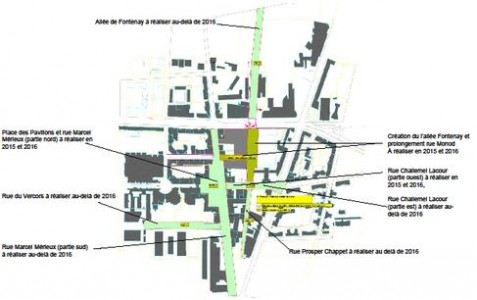 2015 : début des travaux tranche ferme (allée Fontenay, rue Monod, rue Mérieux jusqu’à la