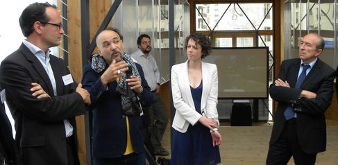 Le maire de Lyon, Gérard Collomb, a présenté hier la maison du projet des Rives de Saône, en présence de l’artiste-architecte Didier Fiuza Faustino.