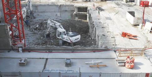 Le chantier est désormais centré sur les fondations de la tour Incity. La déconstruction des infrastructures de la tour est achevée. Les seuls éléments subsistant sont les murs du 2ème sous-sol et le radier de l’ancienne tour. Le niveau se trouvant dans la nappe phréatique, tous les éléments situés dans les étages du sous-sol ont subi un concassage et un broyage. Ils seront triés et laissés sur place afin de lutter contre la poussée hydrostatique. Le radier va subir un fraisage.