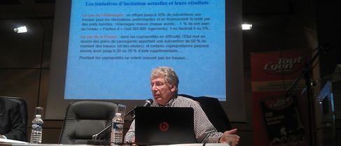 Olivier Sidler, Directeur d’Enertech a d’entrée planté le décor : « Le milieu dans lequel on vit, la planète, est à bout de souffle ». Aussi, estime-t-il urgent de réduire ses propres consommations d’énergie, au vu de la raréfaction des diverses ressources naturelles et du réchauffement climatique en cours. Notamment via la réduction de la facture énergétique dans les bâtiments. Bruno Charles a ensuite développé le Plan Climat du Grand Lyon, qui accorde une grande place à la réhabilitation thermique des logements.