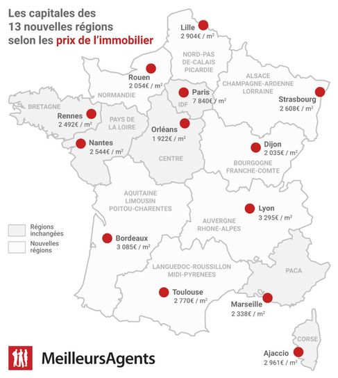 Meilleursagents.com a fait une simulation des capitales des 13 nouvelles régions selon le seul critère des prix de l’immobilier. Lyon est, selon ce dernier, loin devant les autres agglomérations.