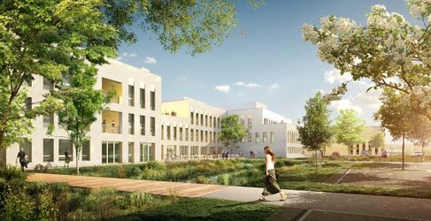 Le parc de 2 hectares sur lequel se dressera le bâtiment en béton comprendra une allée paysagère, avec une plantation de 170 arbres avec différentes typologies d’espèces, la création de noues pour canaliser l’eau, de passerelles en bois…