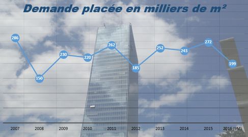 Le marché immobilier tertiaire lyonnais poursuit ainsi le bon trend de 2015. L’an dernier, 272.000 avaient été placés, tutoyant ainsi le niveau record de 2007 (près de 286.000 m² placés cette année-là). A la faveur d’un bon quatrième trimestre, ce chiffre pourrait ainsi être de nouveau approché.