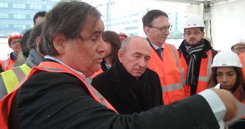 Peu avant la cérémonie officielle, Gérard Collomb a, avec les dirigeants des différents acteurs du projet, visité le chantier, en cours depuis déjà quelques mois. Ils étaient pour cela accompagnés de Philippe Chaix, membre du cabinet Chaix et Morel, l’architecte du bâtiment avec l’agence lyonnaise AFAA.