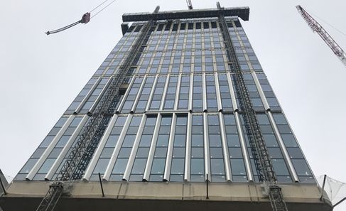Le maire de Lyon a visité mardi avec la presse le chantier de transformation de l’ex-tour EDF, située au sud du centre commercial de la Part-Dieu.