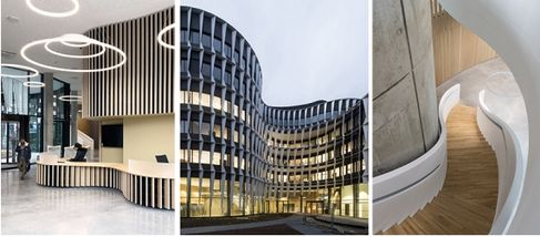 « Situé au cœur du Carré de Soie, ce projet est à géométrie variable avec des noyaux compactés au maximum au profit de grands espaces de travail traversants, libérés de toute structure. L'ondulation des façades et l'écriture des brise-soleils qui les protègent, créent des perspectives changeantes, des échappées visuelles, et révèlent un univers intérieur à la fois doux et spectaculaire. Les derniers étages sont sculptés dans la continuité des courbes de façades et libèrent de larges terrasses qui profitent de soleil et de calme à l'écart du bruit de la ville. Elles sont le support de nouvelles pratiques, de nouveaux usages dans le travail : réunions informelles, détente, relaxation, sport, agriculture», a précise l'architecte Philippe Croisier de l’Atelier du Pont.
