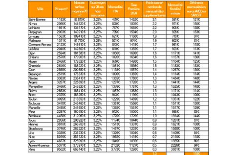 Pour l’achat d’un appartement de 70 m² avec un emprunt sur 20 ans, le montant de taxe foncière représente en moyenne 1,3 mensualités contre 1,1 l’an dernier. Mais cette moyenne n’est pas répartie de manière homogène.